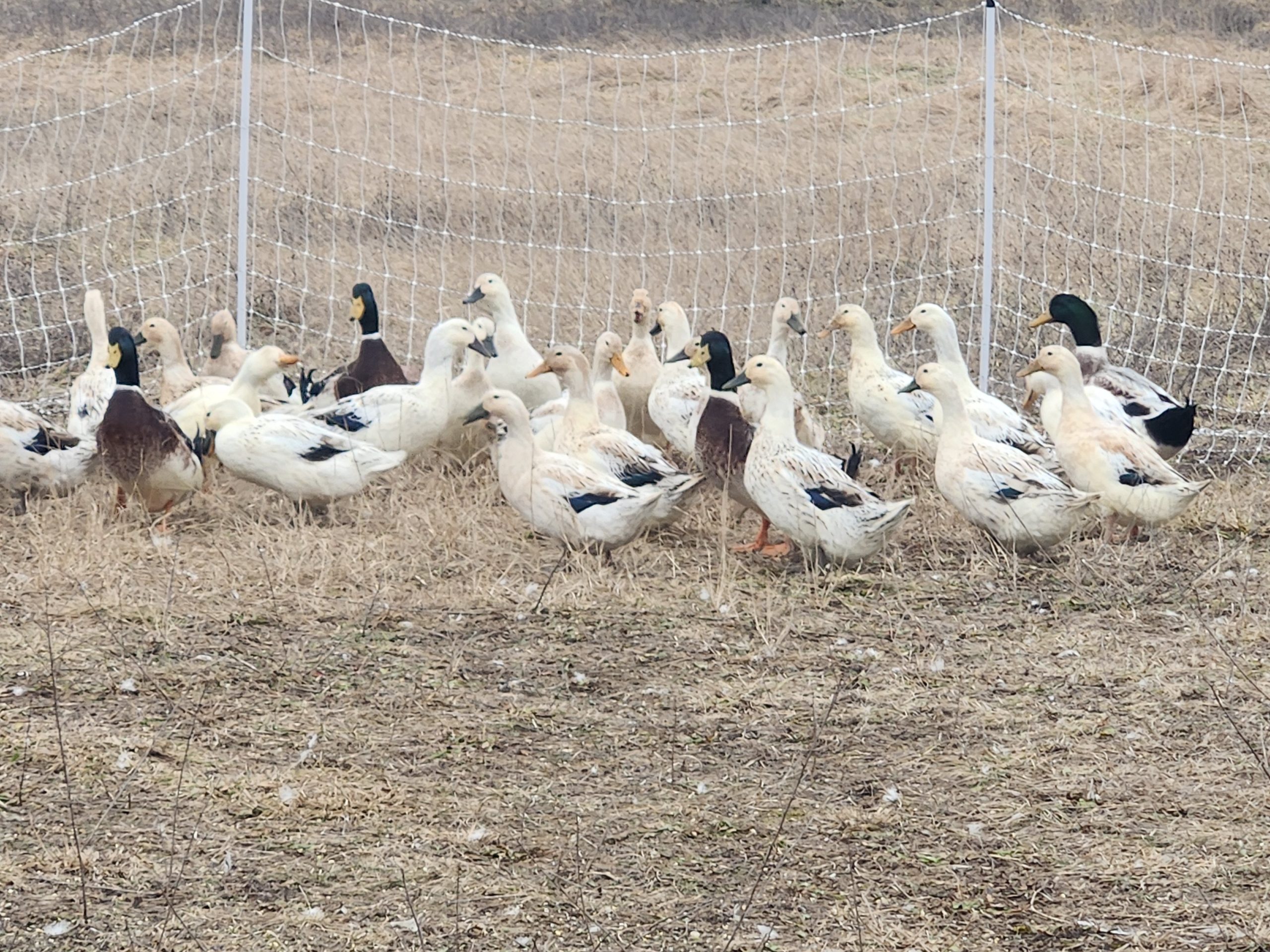 In 2023, my Husaband TJ expressed an interest in raising ducks and I jumped at the thought. So, 30 Welsh Harlequins soon arrived from Sand Hill Preservation. They appear to all be silvers, and a lot more skittish than I recall from my childhood where they were always the original breed of choice for me. In 2025 I hatched and selected for auto-sexing, and realized that is a project that needs work since many of those hens now have too light of bills as adults so 2026 will bring lots of hatching and selecting for auto-sexing and correct color on the adult animals. But for now, they are very productive egg layers.